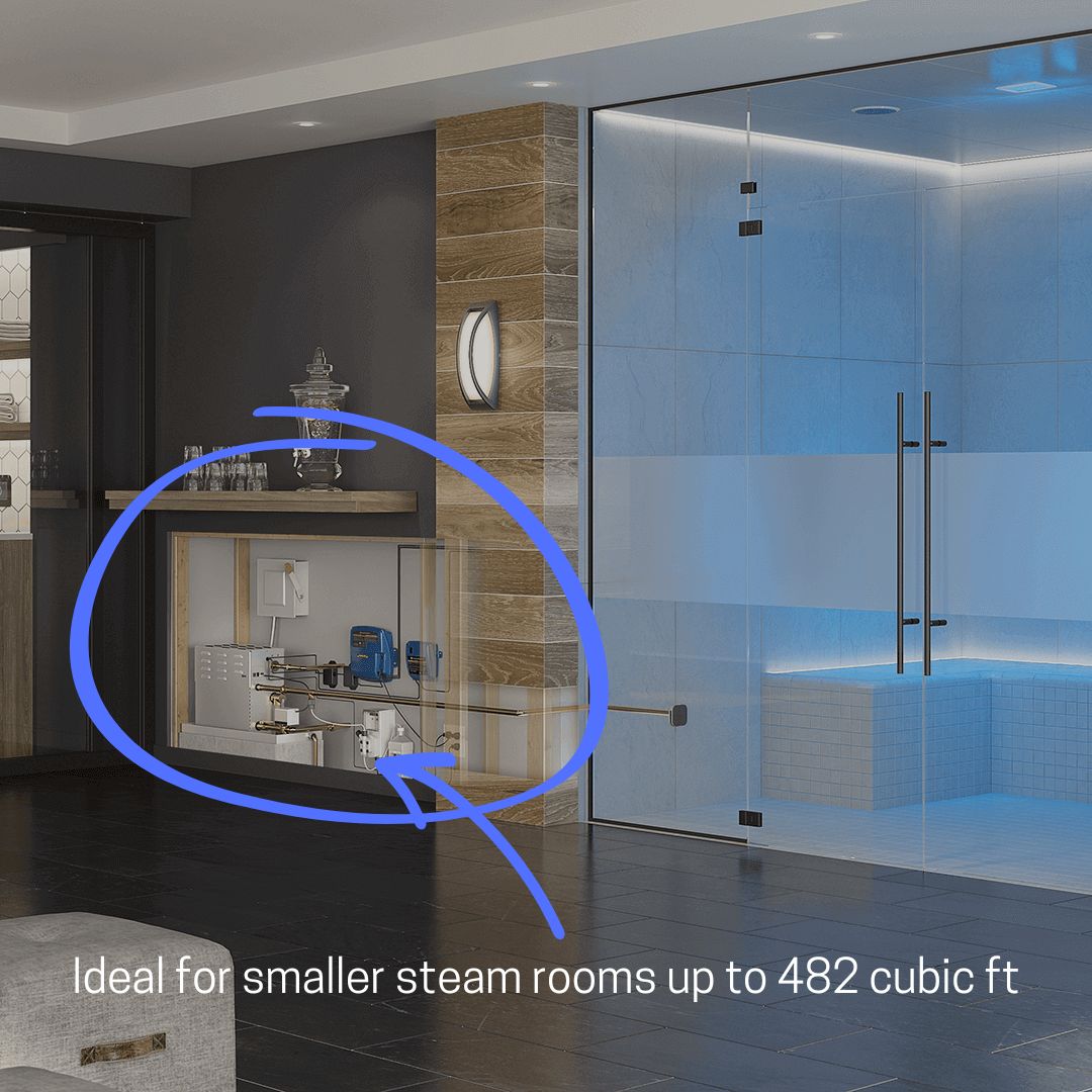 Provides control of the steamroom by the owner/operator from outside the steamroom